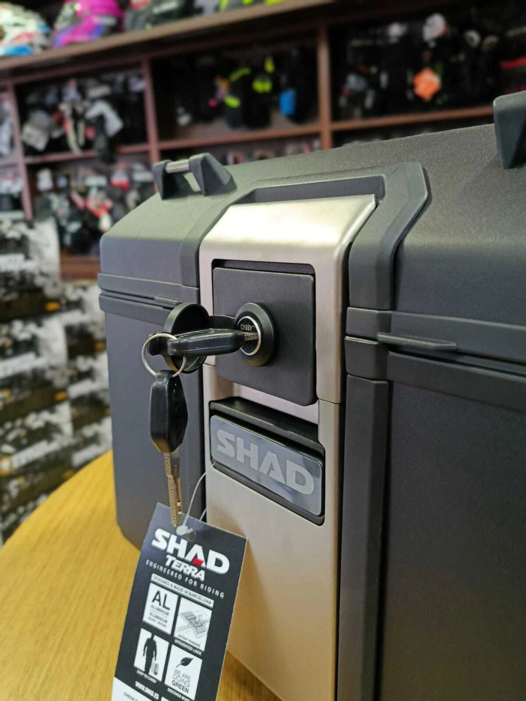 El baúl TR48 está diseñado, desarrollado y fabricado 100% en Barcelona con capacidad para un casco (Trail) o 2 cascos (modular y jet). Fabricado en aleación de aluminio endurecido, un tipo de aluminio más fuerte y ligero que permite una sección transversal reducida de 1,2mm para obtener un peso mínimo con la máxima resistencia. La TERRA 48 BLACK EDITION está acabada con pintura en polvo resistente a los arañazos.