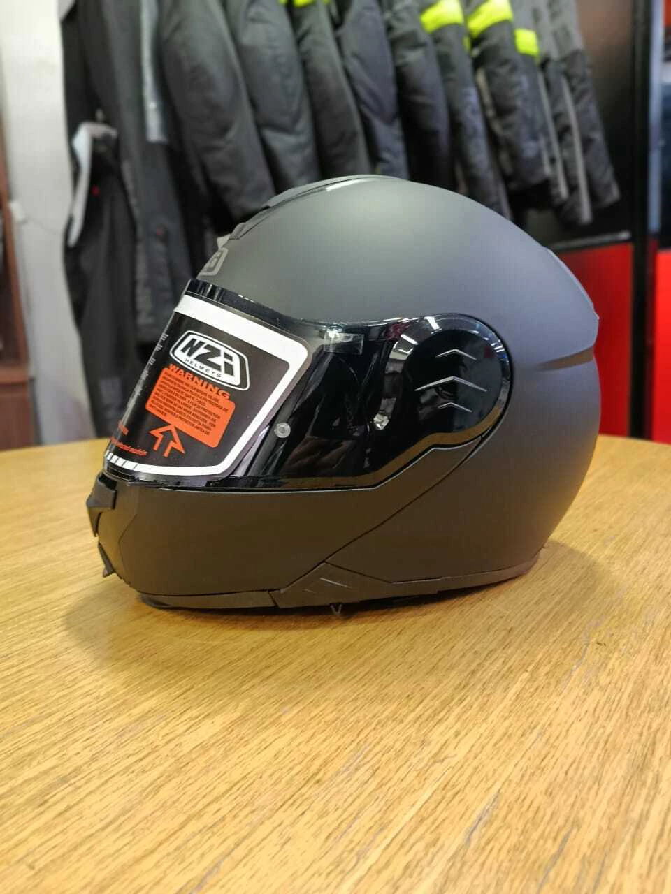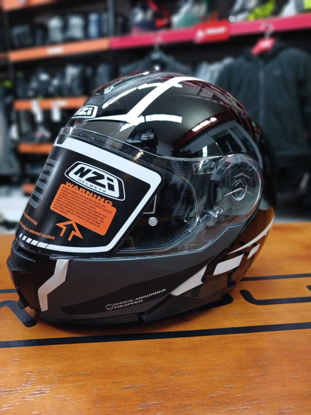 Casco de moto modular NZI dotado de una carcasa ligera en resina resistente.